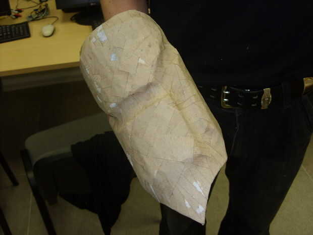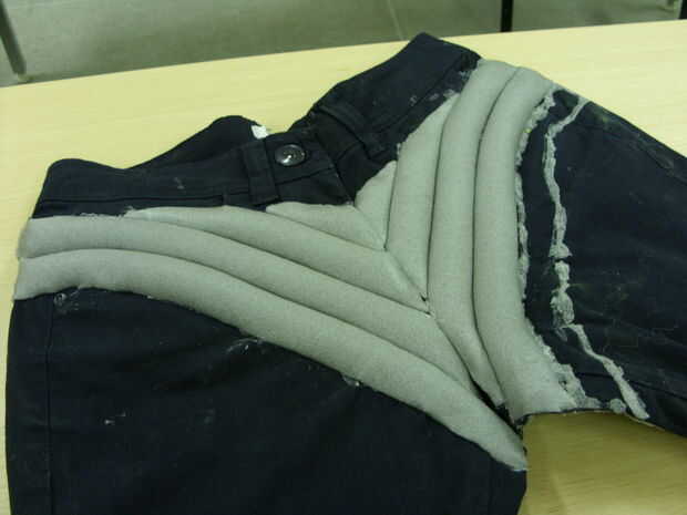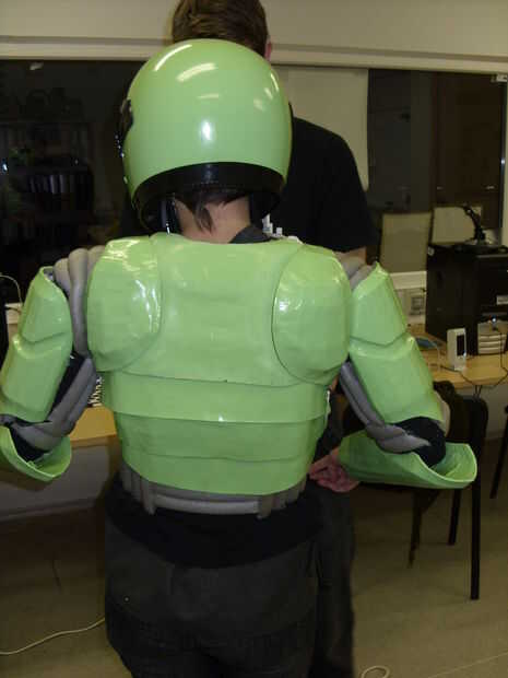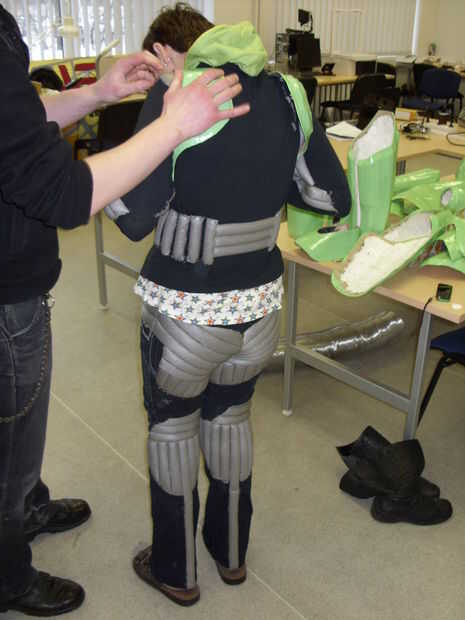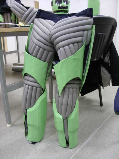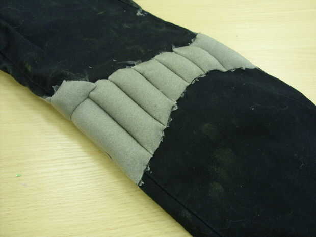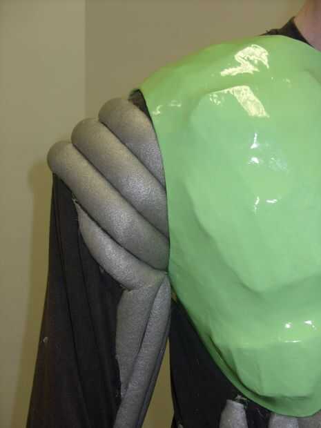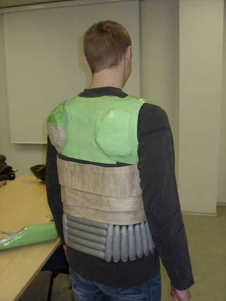 Después de preparar la ropa, puede atar el exoesqueleto hasta ellos. En primer lugar, amarrar las piezas que serán cubiertas por otras partes. Cada parte se cose con hilo grueso o cuerda entre material y bucles, que se hicieron en el interior del esqueleto. Les deja largo encaje de corte de roscas para facilitar el cordón. Después de la lazada, apriete hilos para que partes del exoesqueleto mover uno al otro y adaptarse a la ropa. Es aconsejable para fundir puntas y nudos del hilo de rosca grueso con encendedor para evitar nudos rompiendo. Hacer un nudo de hilo y el fusible inmediato y otros - sólo cuando la parte del exoesqueleto se mueve a su lugar. En la parte posterior de la cintura es bueno hacer pliegues como de langostas y otros artrópodos. Para hacer los pliegues se encuentran bien, atar su desembocadura arriba y ocultar el lugar de enlace en otra divisa. Cuando partes de la espalda y el pecho del traje están listas mangas de corte a lo largo de la espalda y el pecho del contorno partes apagado. Colocar las piezas restantes y epaulet en esas mangas separadas. No olvide que en las axilas la textura gris debe dejarse para proporcionar la libre circulación de las manos. Este traje se saldrá de pesado, así que para evitar el dolor de hombro, coser en la zona de la espuma de hombros u otros ablandamiento en. Debido al peso, la camisa será obtener más floja, sobre todo después del corte de las mangas, cosa tan fuertes cuerdas en (no deja exoesqueleto se deslice) cortar en lugares de la camisa. Cuando mangas estén listas, usted puede unirse entre sí mediante gomas fuertes. Cauchos deben enviarse a través de bajo partes de la espalda y el pecho. Ellos siempre mantenga los hombros y las mangas y también permiten moverse fácilmente.