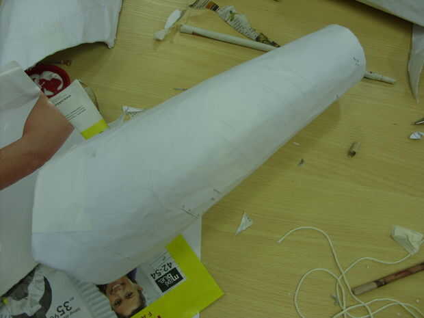 Para que el exoesqueleto necesitamos las piernas, muslos, antebrazos, brazos y cintura formas. Corte pedazos de cartón rígido. Las piezas tienen que ser un poco más ancha que el área necesaria del exoesqueleto. Las piezas será sólo una base sobre la que el material compuesto para la celebración se pegan. Cartón se pone alrededor de las formas y fija con cinta adhesiva. Dibujar formas de exoesqueletos en cartón. Cortar bandas de fuera de la cartulina y pegar en los lugares redondeos (por ejemplo-hombros) por separado. Cuando la base del traje está lista, usted tiene que cortar franjas (las dimensiones de una raya-20x50mm) de papel fino, después preparar pegamento-necesariamente tiene que ser un poco acuosa, si es no - licuar un poco. Entonces usted puede comenzar a pegar tiras de papel. Es mejor pintar cada banda por separado y luego poner en la base, por lo que la forma se hinchan mucho get lessand secan más rápidamente, también que las rayas encajaría mejor en el formulario. Intente presionar bien cada raya, frote adjunto forma con herramienta redonda lisa, por ejemplo-con la manija del cuchillo o el mango del cepillo de madera para que las capas mejor y spead en capas más finas. Pegamento por lo menos 4-5 capas de papel para el principio y que para secarse. Después de se pueden cortar los bordes irregulares. El exoesqueleto también necesita bucles para fijación. Para hacer, en la distancia de 2-3cm de lado de forma cortar huecos cada 8-10 cm., empuje el hilo de caprón por esas brechas y hacer unos 2cm de longitud los lazos en el interior de la forma, los lazos se utilizará para coser ropa. Cuando se realizan los pasos anteriores, repita rayas de papel pegar, esta vez que tendrá que pegar 3 capas. Intentar pegar primera rotonda de capa los lazos tan estrecha como sea posible, siguiente pegar capas papel tira cuerdas para esa superficie cerca lazos wil suave. Después de hacer usted podría hacer este traje buscando más robot como mediante la creación de una bas-relevación. Para esto hacer tubos de papel de papel pegado en varias capas, enrollado y corte en la longitud necesaria. Luego pegar los tubos en cualquier diseño que te gusta. Después de tuberías consigue seco, pegar por lo menos 2-3 capas de tiras de papel en ellos. Para ocultar la diversidad de colores de las capas anteriores en pintura, es mejor pegar la capa superior con papel blanco o papel unicolor. Partes de barniz o pintura que están dispuestas a hacer papel resistente. Después de que se seca, frote las piezas con papel de lija para suavizar pequeñas protuberancias. Si hay golpes después de la segunda pintura, repita el procedimiento. La capa superior de la pintura cualquier color que usted tiene gusto.
