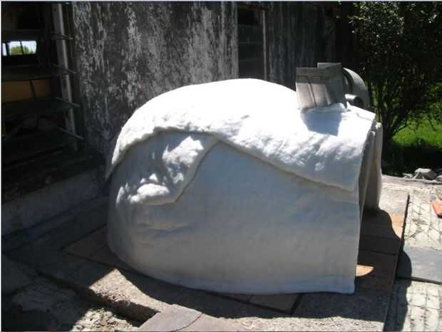 Envuélvala alrededor de maneras largas... que es 2.5mtrs longitud, corte vertical cuando en el lugar hasta llegar a la curva de la bóveda, hacer esto en cada combinación de cúpula y doble sobre.