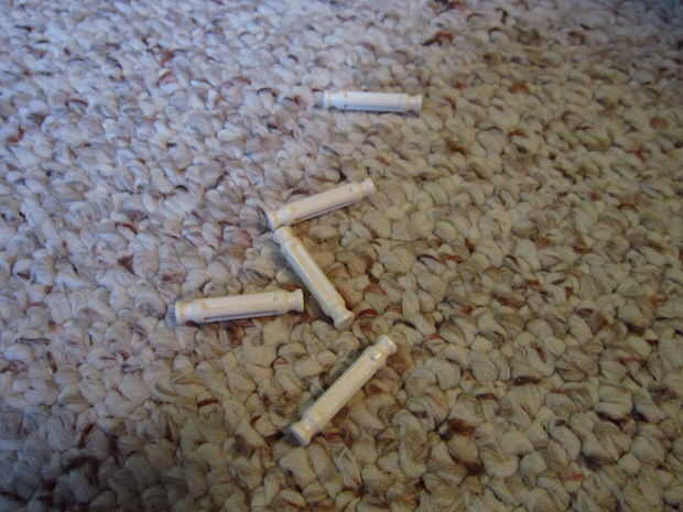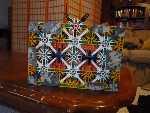 Poner varillas en los agujeros para hacer la claymore más fuerte. Bandas de goma. Por último hacer este poco hacer su claymore.