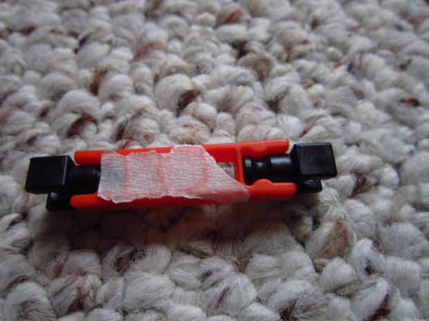 The flap part of the claymore. las naranjas deben tener cinta en la parte posterior para mantener las barras verdes en ellos.
