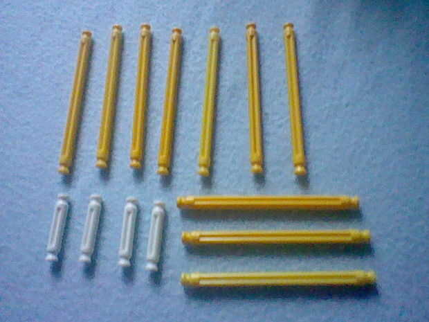 KVG extremadamente poderosa arma fácil de hacer no muchas piezas para hacerPaso 1: reunir estas piezas Roces:6 barras rojo14 barras amarillas5 barras azul oscuras3 Cañas blanco10 pequeñas varillas de verde/negroConectores:5 conectores de círculo blan