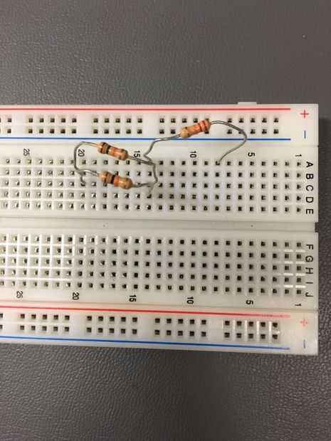 2. Inserte un lado de la resistencia de estos dos de 10 k en una misma línea con un lado de la resistencia de 22 k porque estos resistores de dos 10 k son series conectados con la resistencia de 22 k.