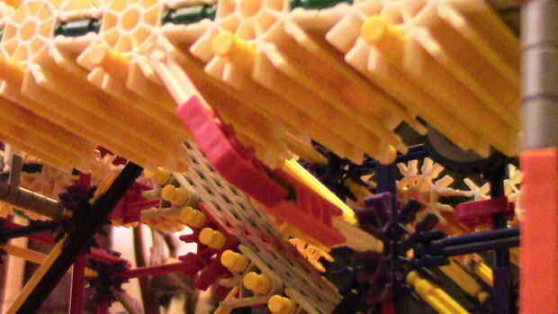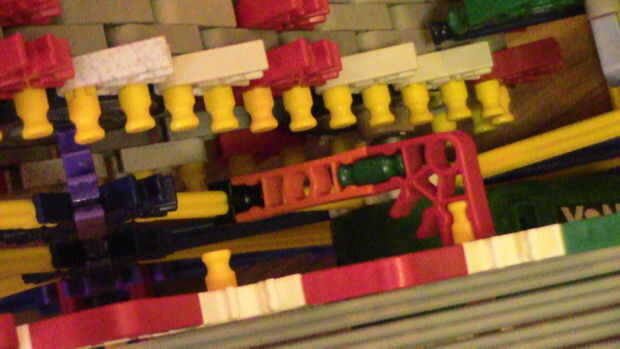 esta máquina de la bola es mi primer modelo que utiliza el suelo blanco para las bolas a la elevación del embudo. El ascensor es un elevador de rueda que es un más grande que generalmente que utiliza muchas piezas pero todavía funciona. Esta máquina