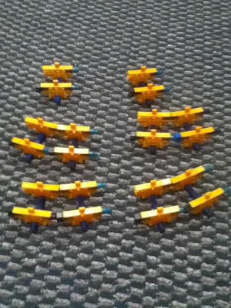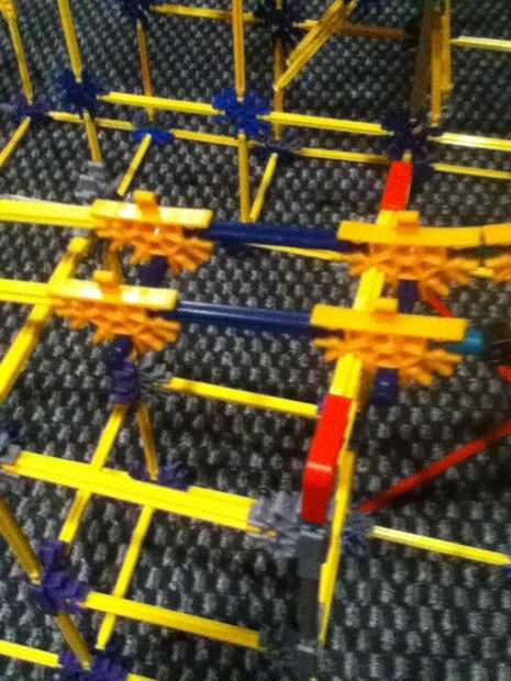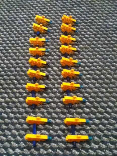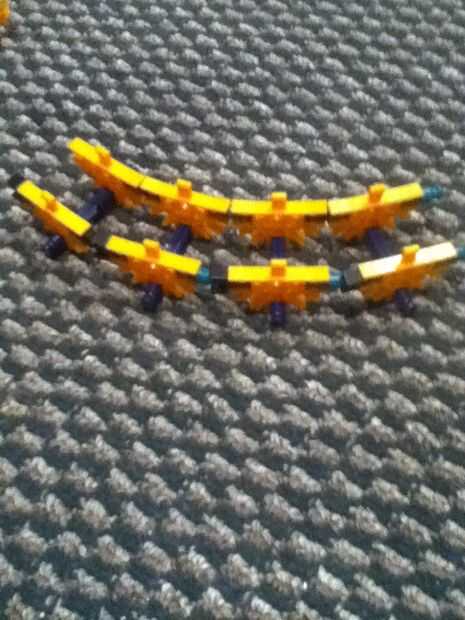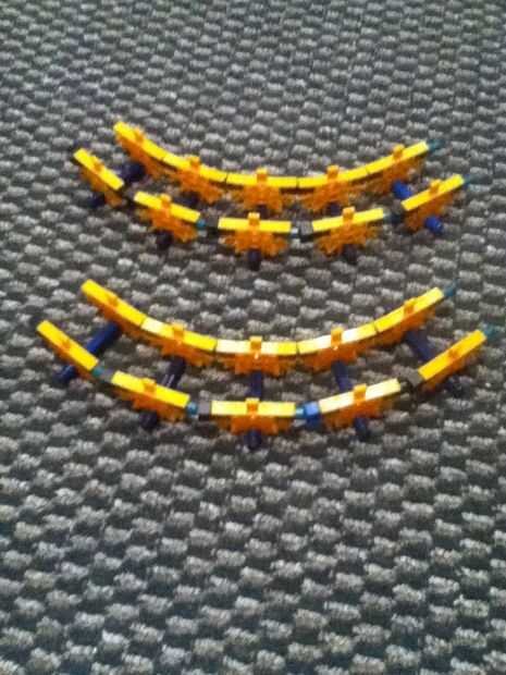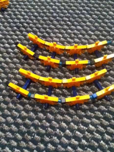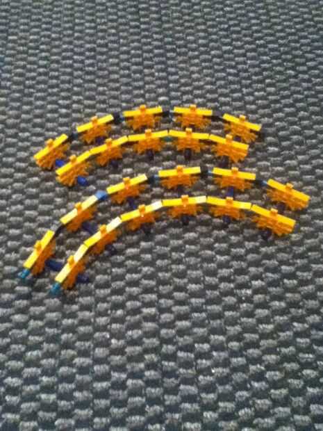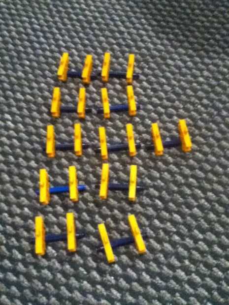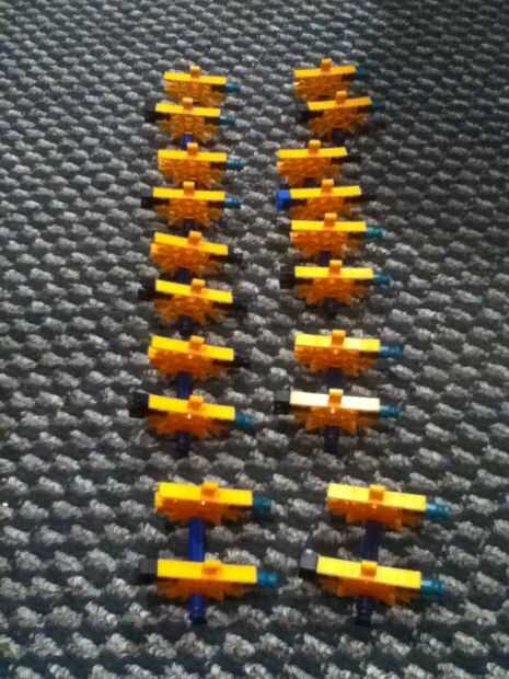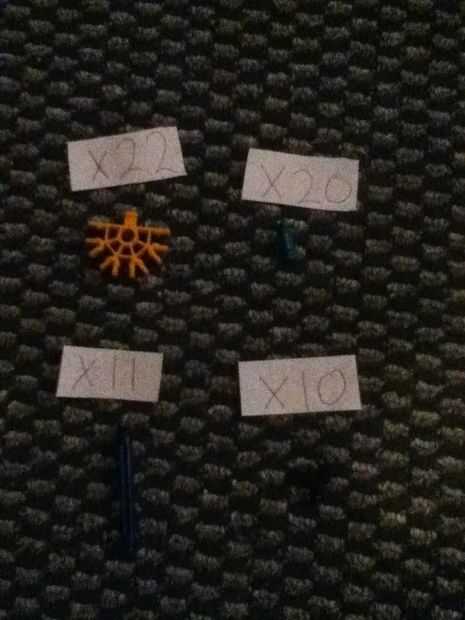 You need 22 five way connectors with tab, 20 small axles, 11 blue/purple axles, 10 "Y" connectors