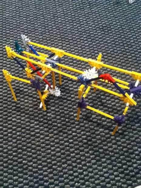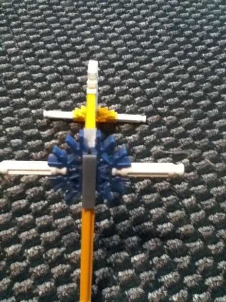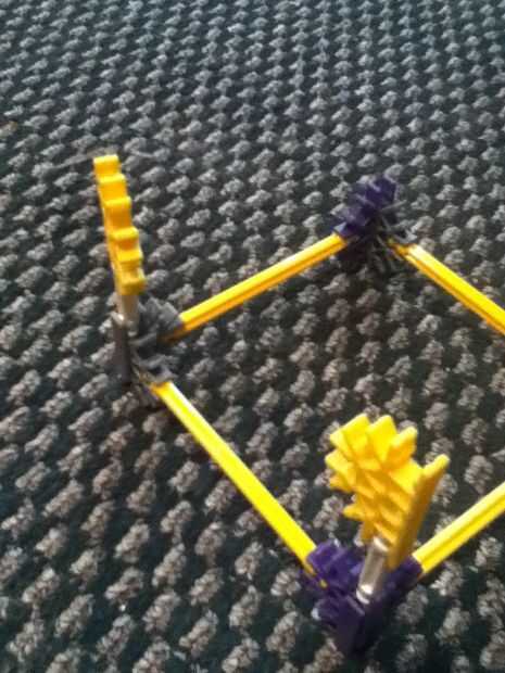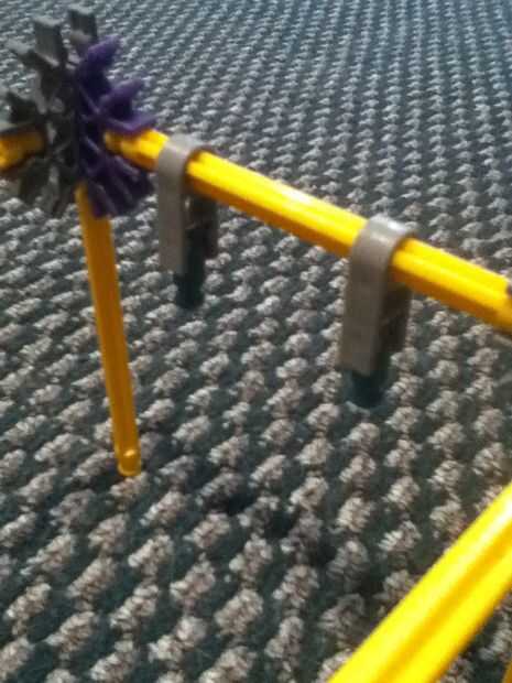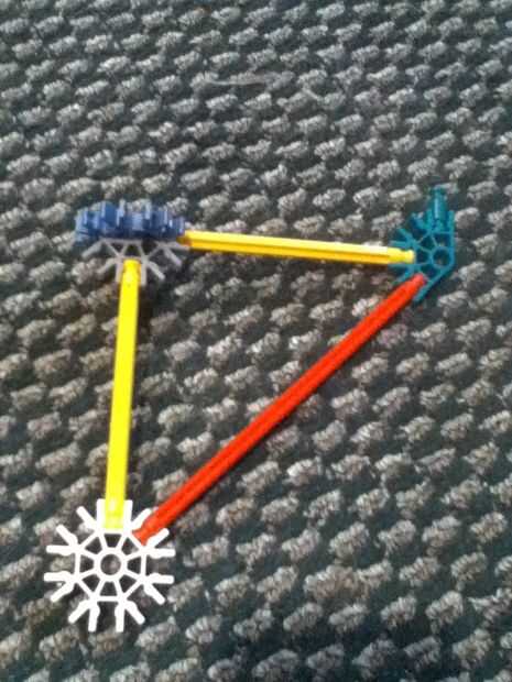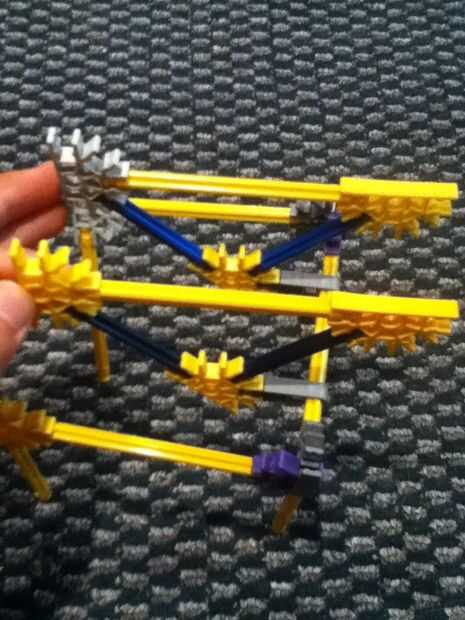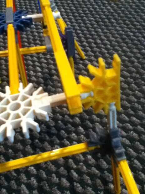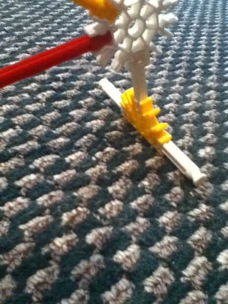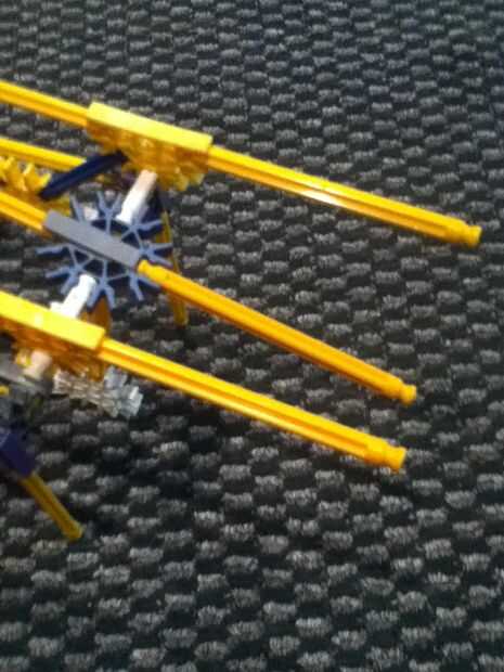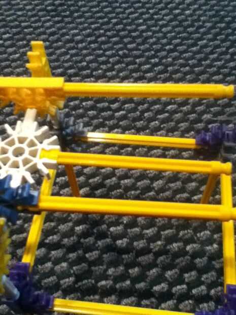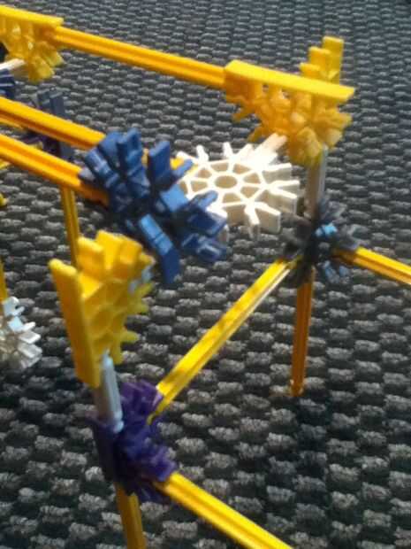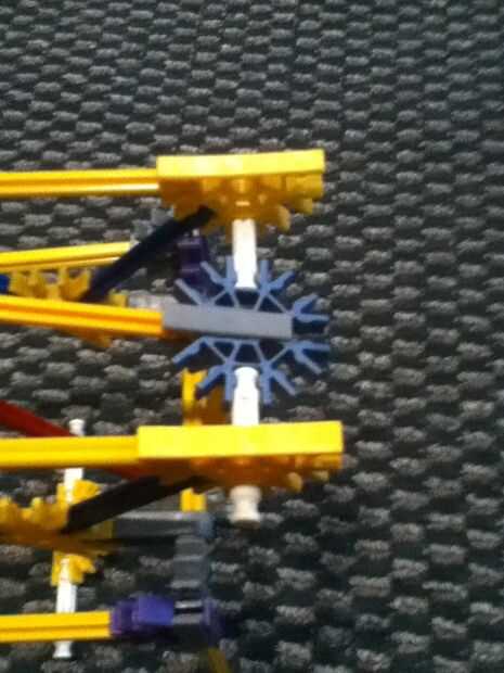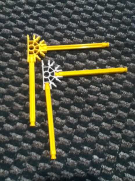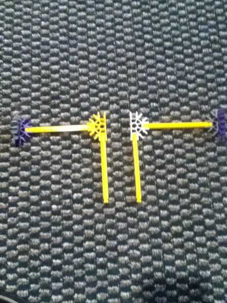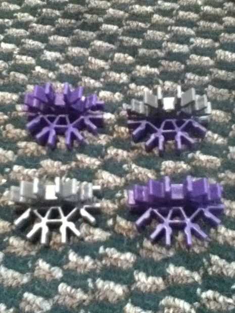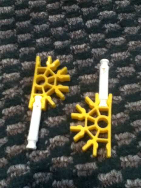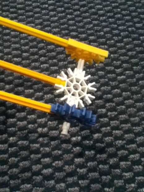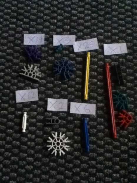 Necesita 19 conectores de cinco vías y cuatro conectores de vías con ranura, 3 pequeños árboles y conectores de siete vías con ranura, 25 amarillo ejes, 1 eje rojo, 1 dos forma recta, 1 vía cuatro verde conector, 1 conector rojo, 12 ejes blanco, 2 conectores de extremo y conectores de copo de nieve, 6 ejes azul/púrpura.