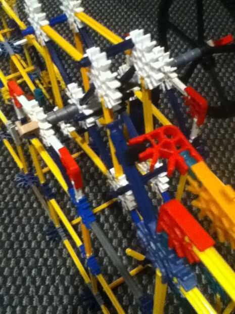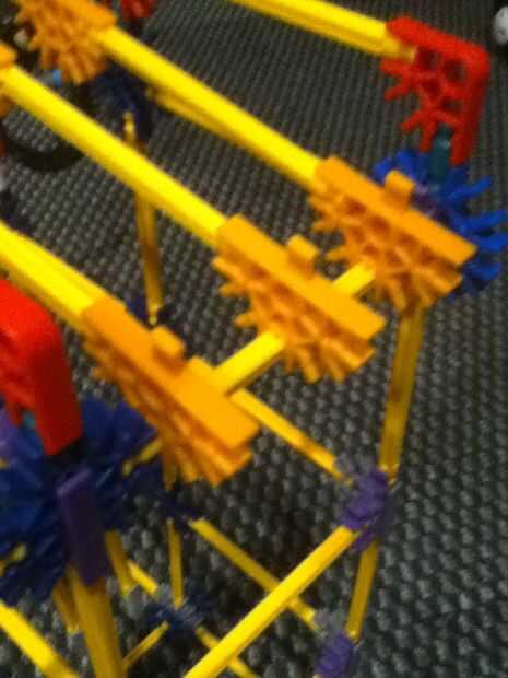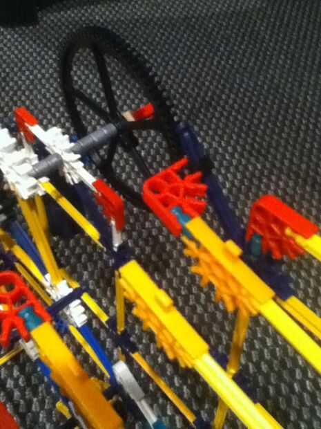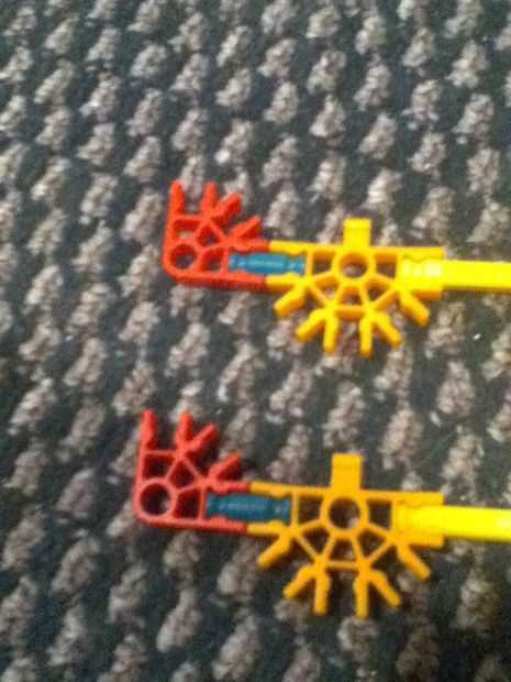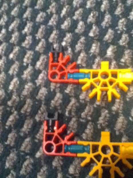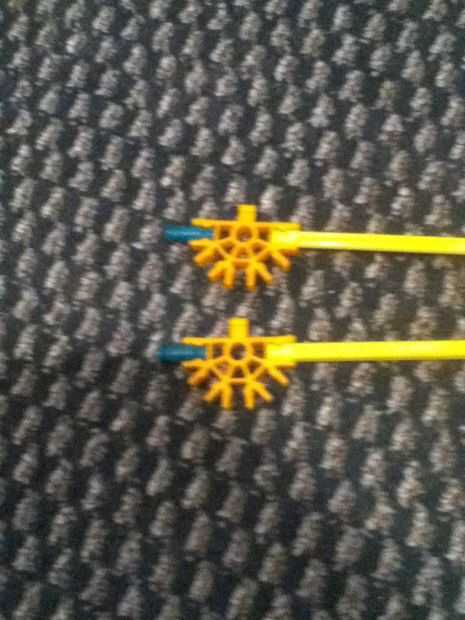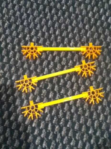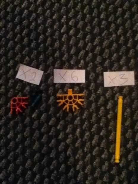 Necesita 2 conectores "Y", 2 conectores rojo, 2 ejes pequeño, 6 conectores de cinco vías con ficha, 3 ejes amarillo.