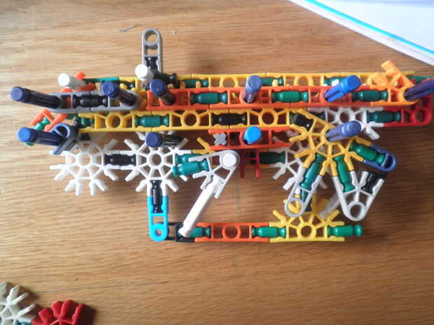 HolaEstas son las instrucciones para la pistola / iPod caso que publiqué hace un tiempo.Esta arma utiliza un medio para algo gran cantidad de piezas, dependiendo de su colección de K'nex. Utiliza algunas varillas rotas, otros trozos que ves en las in