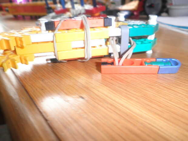 se trata de las instrucciones de la pistola de gomaPaso 1: Lista Roces:4 verde6 blanco1 grisConectores:1 gris1 blanco2 verde2 amarillo3 naranja1 clip y1 clip azul2 bandas de cauchoPaso 2: gatillo Este es el gatillo de la pistola la barra gris puede h