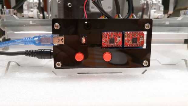 Para completar este paso y complete el montaje de la máquina va a utilizar: dos cables, cable USB, la fuente de alimentación del motor.