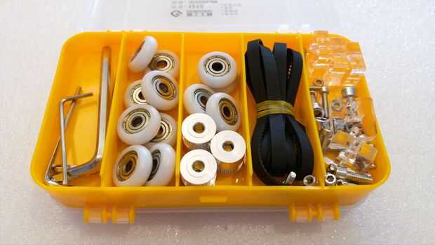 El kit (primera imagen) incluye todos los componentes que usted necesita para comenzar la Asamblea, incluyendo las llaves de allen. Hace las cosas fácil sugiero agregar a los herramientas también una pinza antes de comenzar el trabajo de la Asamblea.
