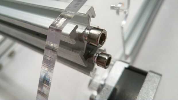 Para completar este paso utilizará: Allen M4 cuatro tornillos, el soporte de aluminio perfilado (último) para el eje x, dos tuercas M4.