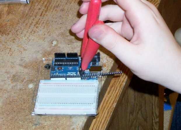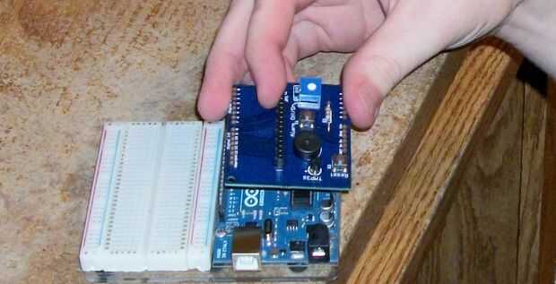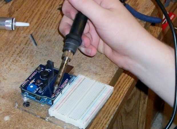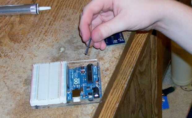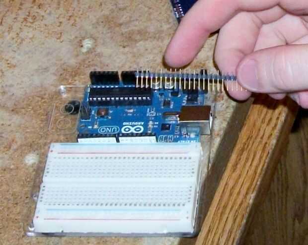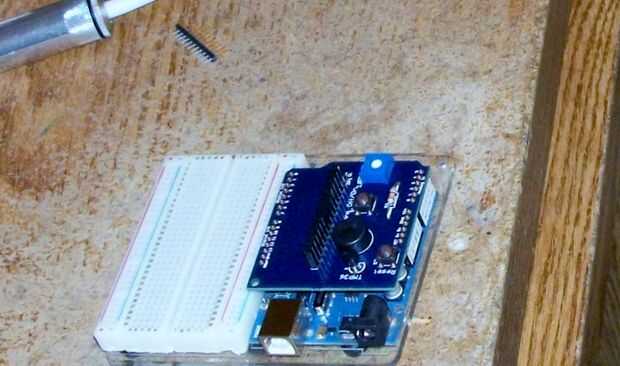 Los encabezados en una tira grande y necesitarán cortar a la medida, recomienda colocar en la placa Arduino y el recorte a la derecha tamaño/longitud y dejándolos en el Arduino para facilitar la alineación