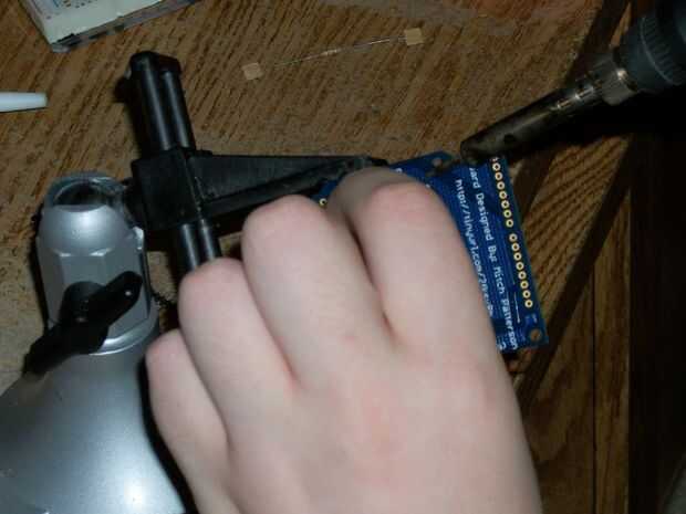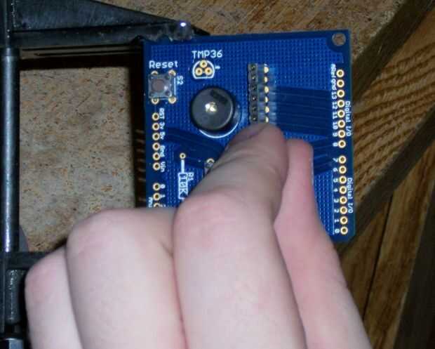 Nótese, la impresión del pie del encabezado bloqueo de Sparkfun aquí. toma un poco de fuerza en la cabecera, pero luego se queda su propio para soldar.