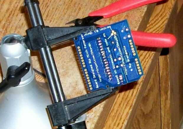 El TMP36 se verá como un Transistor estándar. Usted tendrá que doblar el desplazamiento del medio a los otros pines en orden para que pueda caber en este tablero.