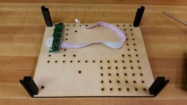 1. Obtener tornillos 5/8"(2), (2) 1/4 espaciadores sin rosca, tuercas (2) 4-40, LCD botón tablero