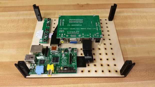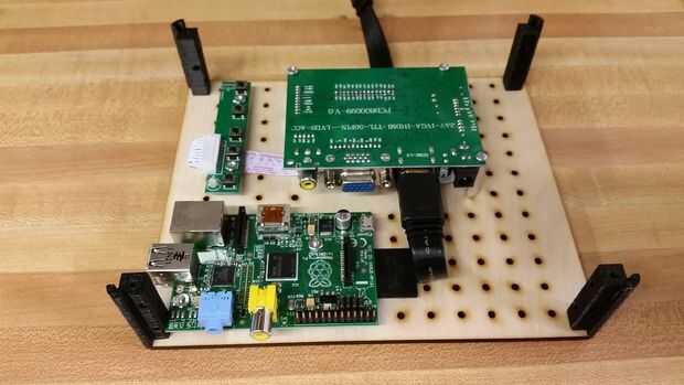 6. Configure el modelo frambuesa PI B en los tornillos. Se celebraran fuera de la placa base por los espaciadores de 1/4"