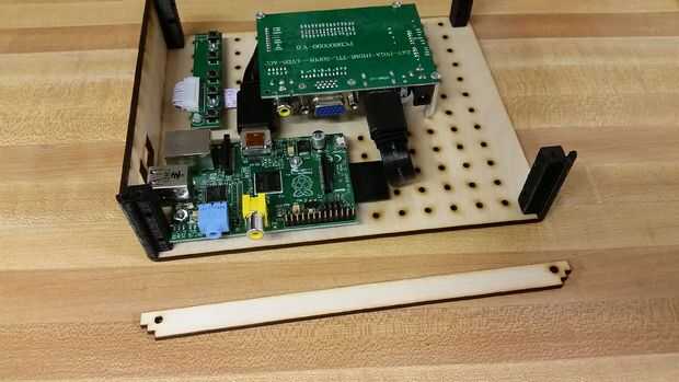 2. Fijar la pieza superior hacia atrás en la parte superior las esquinas impresas 3D que sea sobre la frambuesa PI.