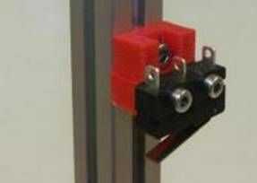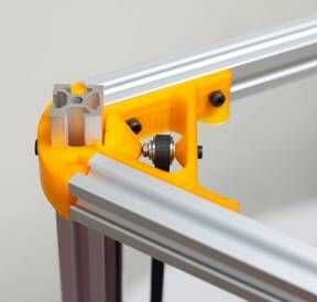 En primer lugar, conecte uno de los titulares del tope plástico a cada una de las protuberancias de la esquina para que queden 10cm de distancia del montaje de la base. Sirven como soportes de los rieles laterales del rodamiento de bolas.