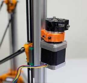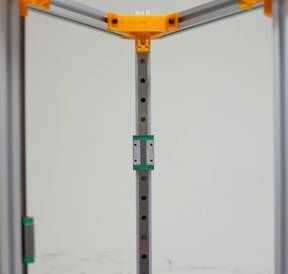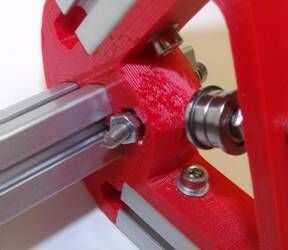 Montar los 2 M3x8 tapa tornillos con tuercas de ranura en t de M3 (sueltas) y deslícelo sobre la torre Z, hacia el exterior. Tornillo en el lugar cerca de la parte inferior de la torre Z, luego conecte la extrusora que con 2 tuercas y los tornillos de casquete M3x16.
