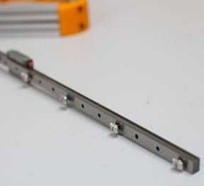 Montar 5 tuercas de ranura en t en los rieles laterales, con cinco M3 x 8 tornillos de cabeza plana, dejando 3 huecos vacíos entre cada tornillo.