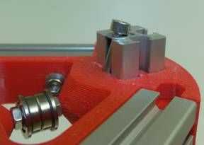 Inserte una extrusión de la torre tratando de no golpear la base para no molestar a la alineación de la tuerca. Con suerte la tuerca se deslizará en el canal de la protuberancia de la torre, lo que le permite empujar la torre hasta la segunda tuerca. Si no se moverá y la cabeza del tornillo de la cabeza comienza a moverse hacia arriba, entonces suerte no estaba con usted. Quitar la extrusión e inténtelo de nuevo. Repita hasta que lo logras! También puede tratar de ajustar el tornillo de cabeza plana ligeramente utilizando una llave hexagonal.