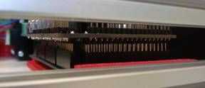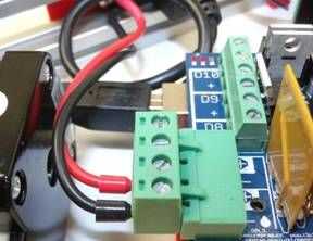 Atornille el cable de alimentación en las rampas. Tenga en cuenta la polarización! Cable rojo va en (+) y cable negro va al conector (-) de la Junta de rampas.
