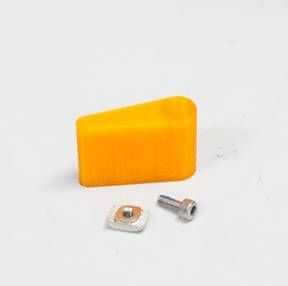 Montar un M3 x 8 tornillo de cabeza plana a cada ficha de vidrio y ajustar las lengüetas como se muestra en la imagen. No apriete todavía.