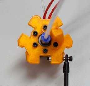 Ajustar una Tuerca Nyloc M3 en cada una de las trampas de tuerca preparado en el efector. Debe ser capaz de sacar fácilmente a mano con un M3 x 25 tornillo de cabeza plana (tenga en cuenta que sólo van en 3/4 de la manera como se muestra en la imagen).