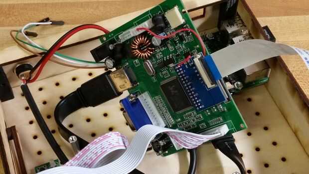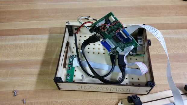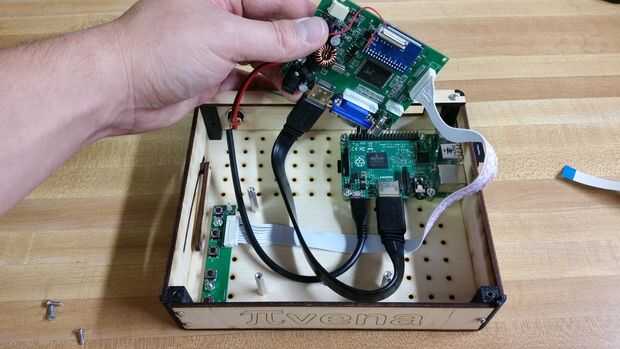 2. Configure el tablero LCD sobre los separadores de 1", al forzar el cable HDMI para envolver apretadamente alrededor de la parte delantera derecha separador. Debe ser capaz de conseguir mantenerse a la derecha de la placa de adaptador azul.