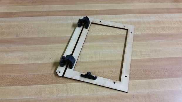 1. Agarra la pieza superior frontal, pantalla bisel, bisagras impresas 3D (2), tornillos 5/16"(9)