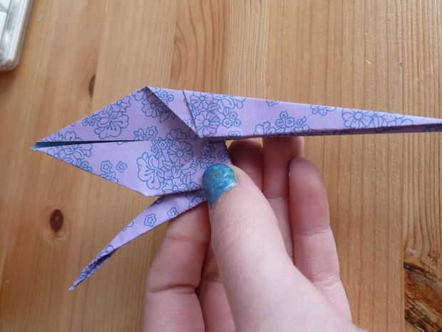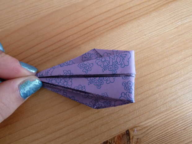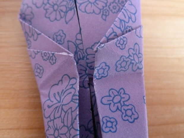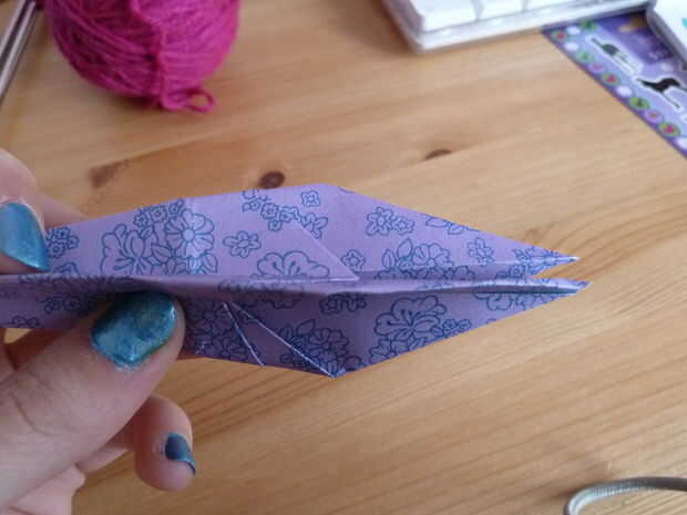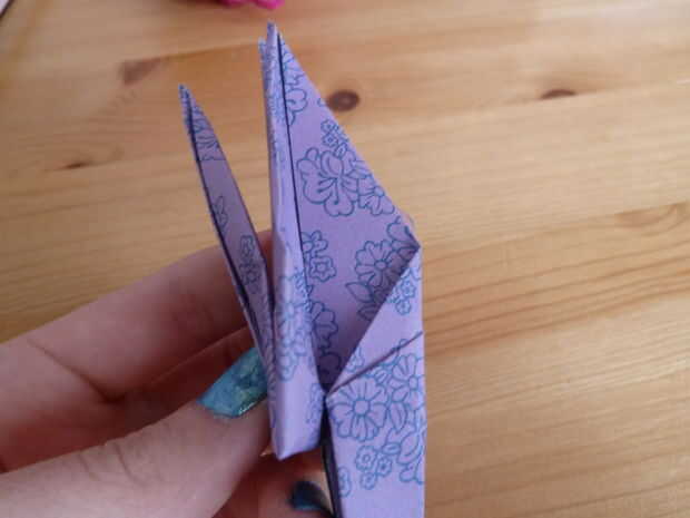 doble de abajo hacia arriba, tanto de las capas. doblar hacia atrás. Mira las fotos de los siguientes pliegues (son difíciles de describir) Repita en el otro lado.