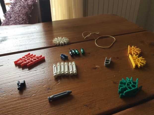 24 requiere KVG piezas, dos pequeñas bandas de goma y algunas pequeñas bandas de goma para munición (trabajo de bandas de refuerzo).Paso 1: El mango Paso 2: Cañón y disparo Paso 3: Mecanismo de carga Paso 4: Juntándolo todo Puede que tengas problemas
