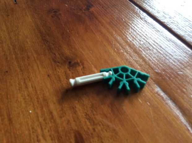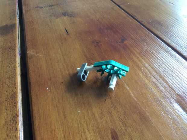24 requiere KVG piezas, dos pequeñas bandas de goma y algunas pequeñas bandas de goma para munición (trabajo de bandas de refuerzo).Paso 1: El mango Paso 2: Cañón y disparo Paso 3: Mecanismo de carga Paso 4: Juntándolo todo Puede que tengas problemas