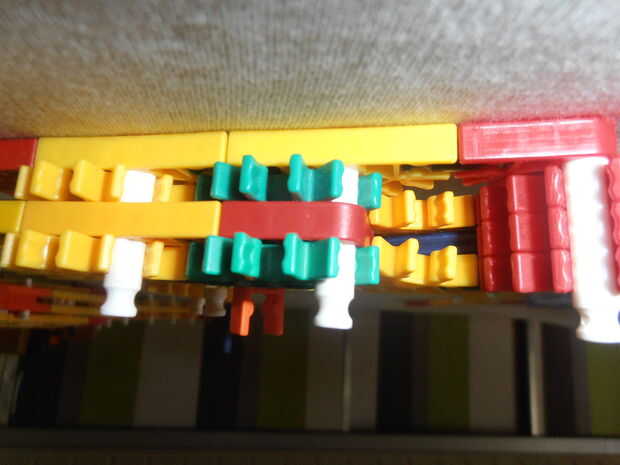 Hi i made this k'nex bulldozer , which has steering and a digging scoop. También tiene unas escaleras ubicadas en la parte trasera del vehículo. El manejo posterior es una gran idea porque ayuda a la topadora manejar mejor que un coche alrededor de l