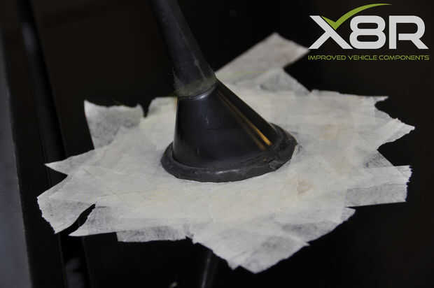 Aplique cinta de enmascarar alrededor de la base del sello, asegurándose de que está sentado bajo el sello para proteger el trabajo de pintura de cualquier daño accidental.