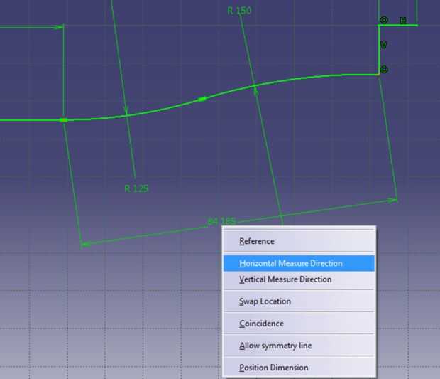 Punto haga clic en Inicio de sección curva > haga clic en punto final del tramo curvo > Arrastre lejos > click derecho > seleccionar medida Horizontal > haga clic en