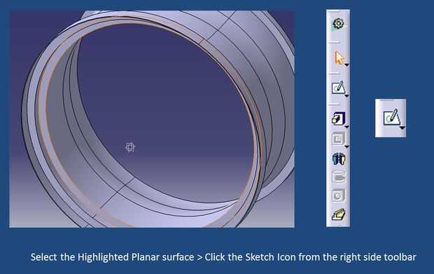 Seleccione la superficie plana destacado > haga clic en el icono de dibujo desde la barra de herramientas del lado derecho