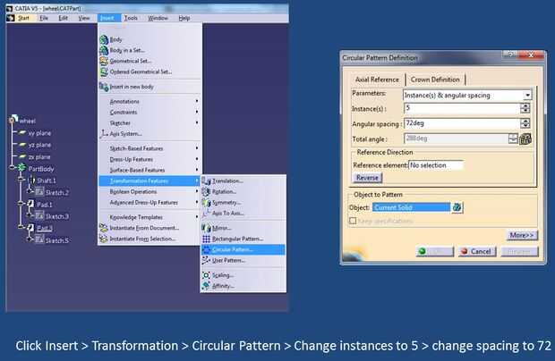 Instrucciones para el diseño de una rueda en CATIA V5 (36 / 45 paso)
