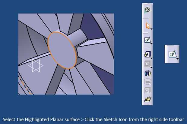 Seleccione la superficie plana destacado > haga clic en el icono de dibujo desde la barra de herramientas del lado derecho