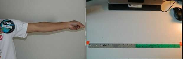 Mida 20 a 30 pulgadas en línea. (Sobre una longitud del brazo)