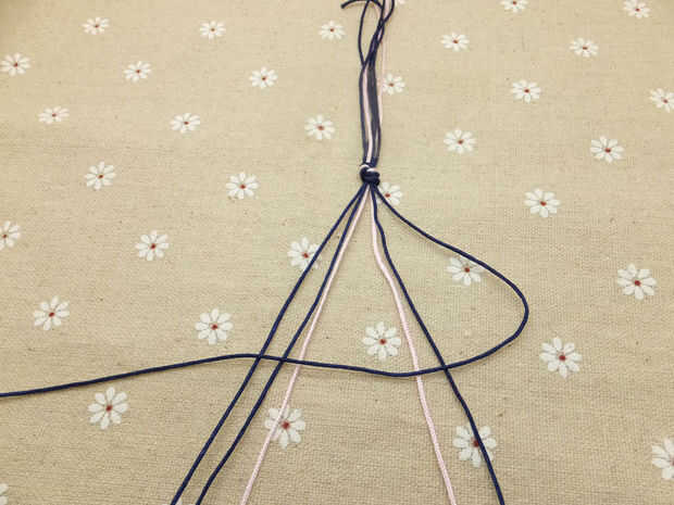 Paso 2: Comenzando con el cordón exterior derecho, atar un nudo hacia atrás hacen un ángulo de noventa grados con el cable que sobre la parte superior de la médula a que son atarla.