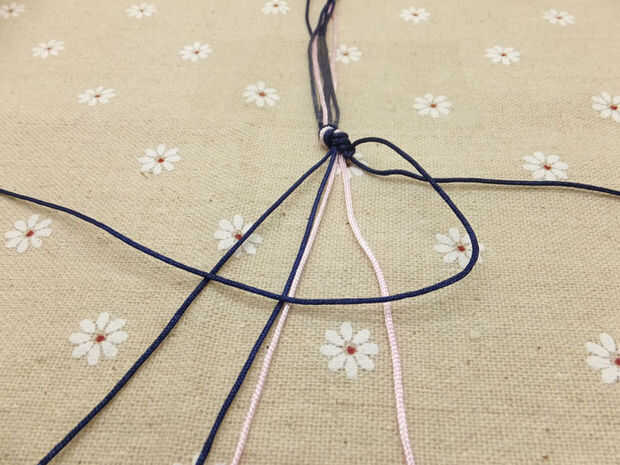 Paso 4: Una vez que se anuda el cordón exterior derecho a la junto a ella, lo mismo a la siguiente cuerda más cerca de la mitad.