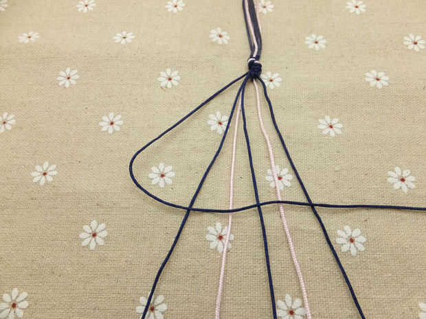Paso 6: Ahora coge el cable exterior en el lado izquierdo (ver aquí en azul oscuro) y hacer un nudo hacia adelante creando una forma de 4 con el cable de 2.