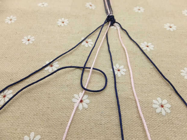 Paso 8: Una vez que se anuda la cuerda izquierda externa a la que a su lado, la misma a la siguiente cable de más cerca a la mitad.