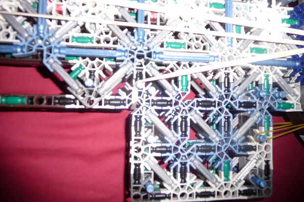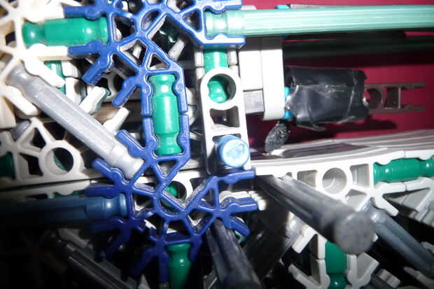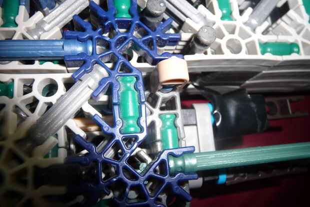 Nota: que quería ahorrar en piezas para esta parte, usé varillas azules en vez de conectores 5 vías y 8 vías con un puñado de pequeñas barras verdes sobre ellos. Si lo desea, puede hacer con conectores y barras verdes pequeñas en lugar de varillas azules.