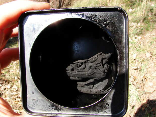 Cuando esté fría, charcloth se extrae y se conserva en recipiente hermético/estancos para el almacenamiento.
