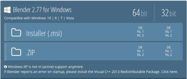 Para empezar, visite https://www.blender.org/download/ y seleccione la versión correspondiente a tu sistema operativo.