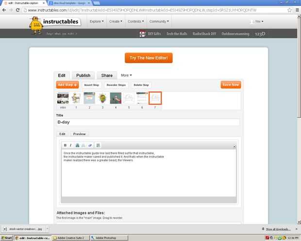 En nuestros continuos esfuerzos para hacer de los Instructables editor fácil de usar, tenemos una nueva ronda de actualizaciones. Aquí es una guía de huesos desnudo para que usando el editor desde el inicio hasta el final.Paso 1: Iniciar un nuevo ins