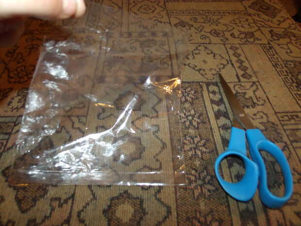 Toma tus tijeras y cortar la bolsa sandwich o ziplock en mitades.